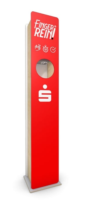 Handdesinfektionsspender mit individueller Grafik.