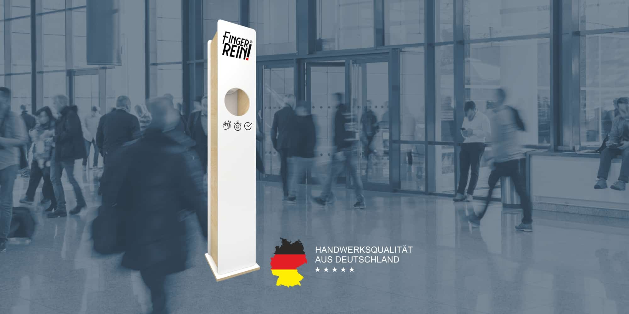 Das kontaktslose Hände-Desinfektionsmittelspendermöbel ist ideal für die Gewährleistung von Hygienestandards für hochfrequente Bereiche wie zum Biespiel für Eingangsbereiche, Schulen, Geschäfte, Hallen, Artzpraxen, Kliniken und andere öffentliche Bereiche. Jetzt neu – Frontdesign mit individueller Grafik.